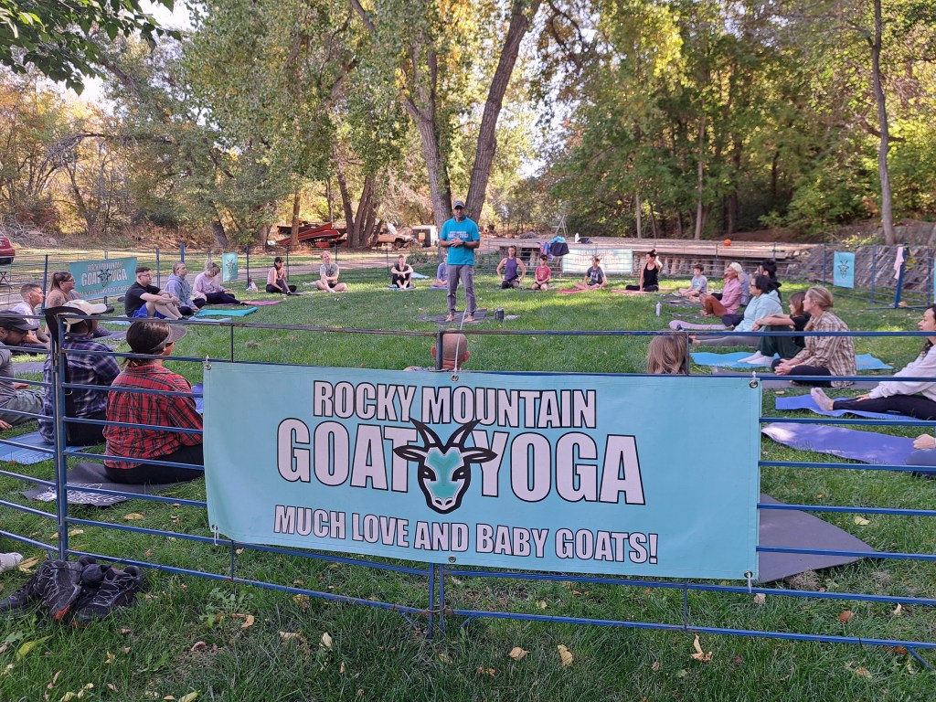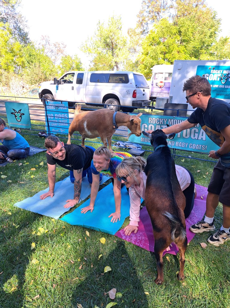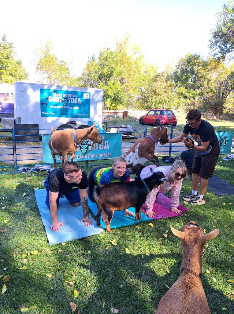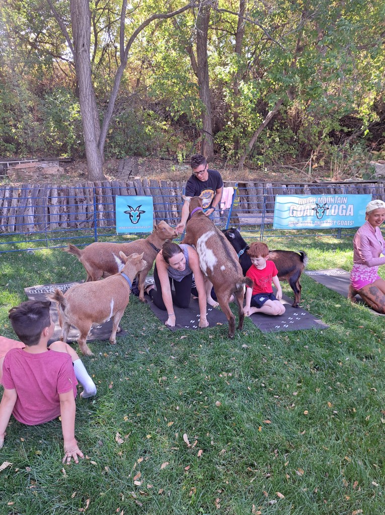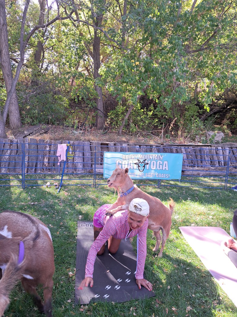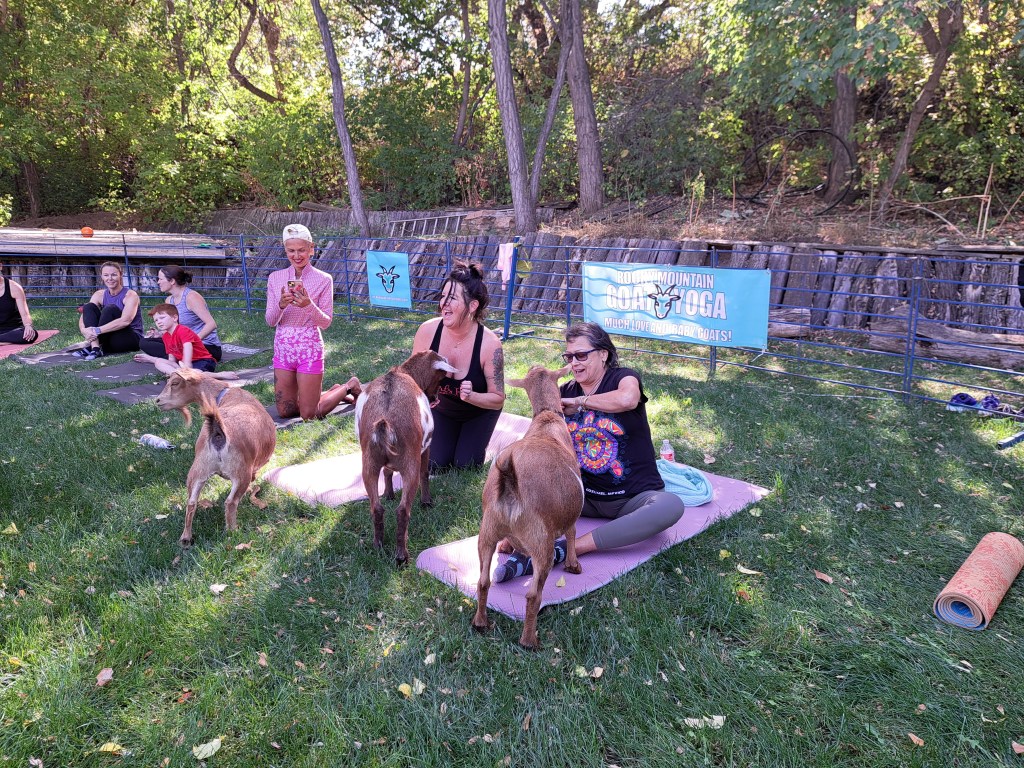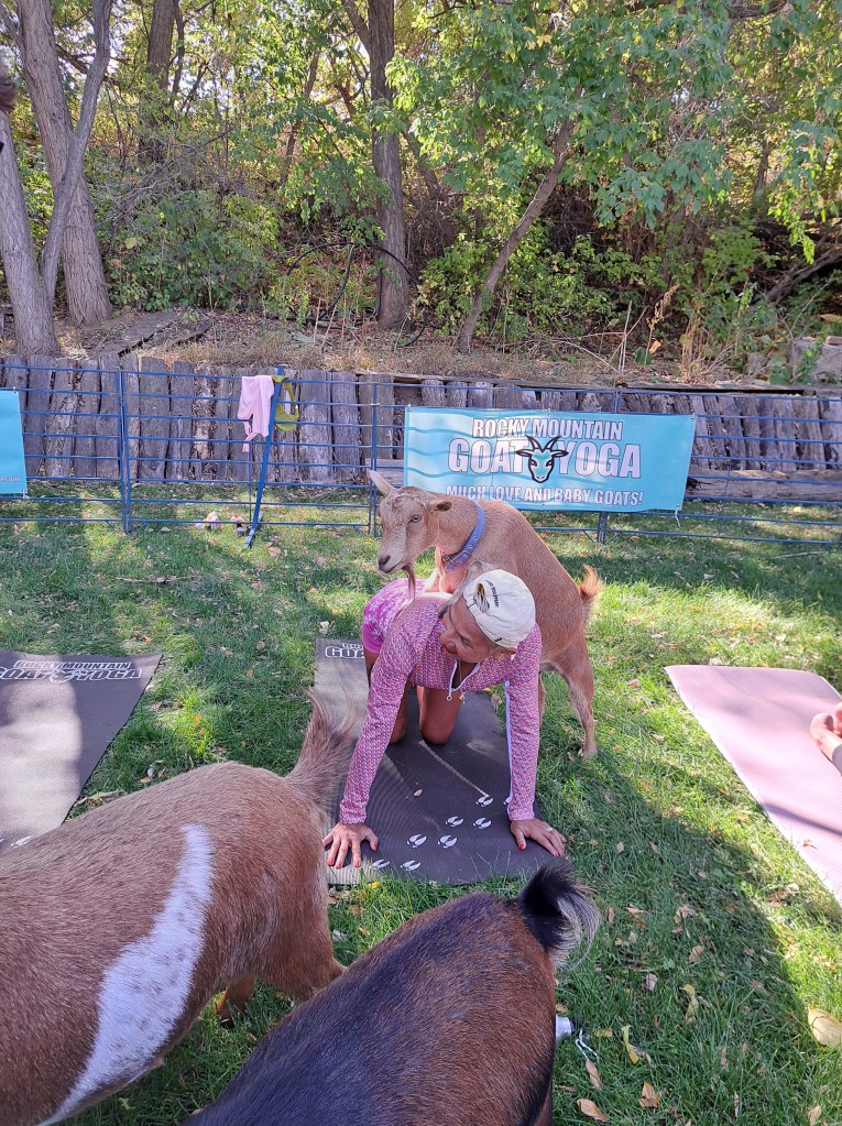 Would you like to have a goat yoga experience? Check my calendar for upcoming times and locations, or visit Rocky Mountain Goat Yoga for the full calendar and event schedule.