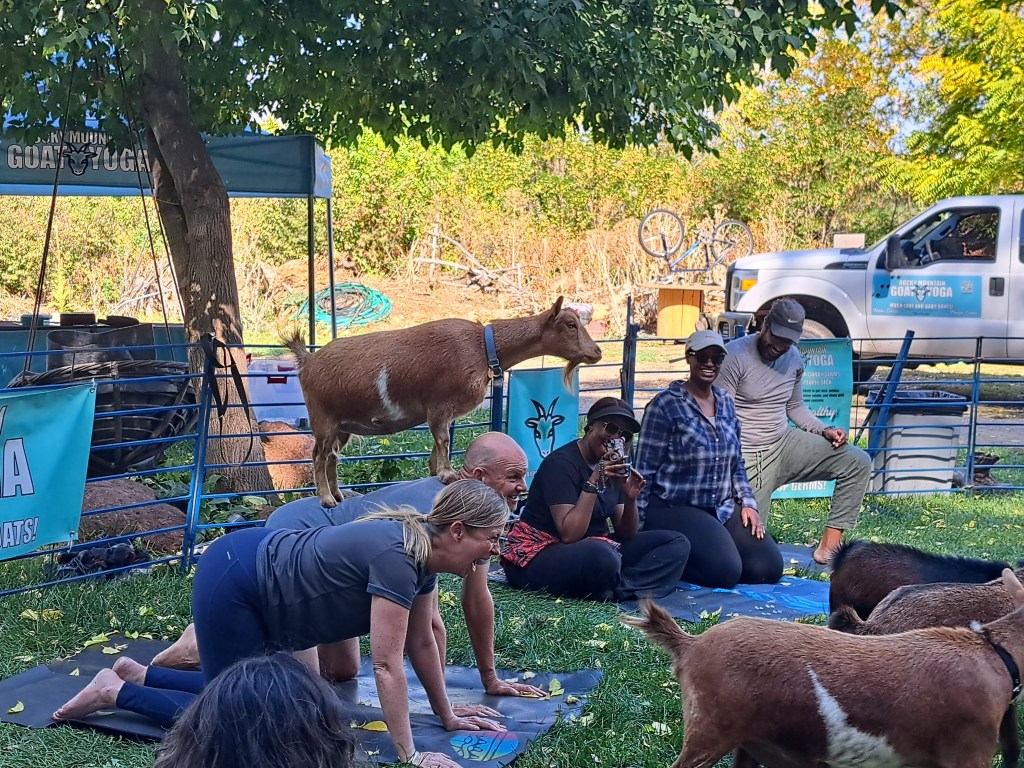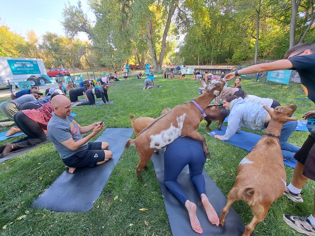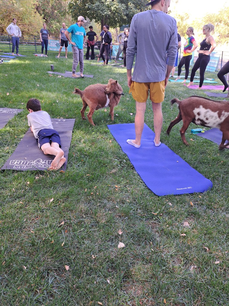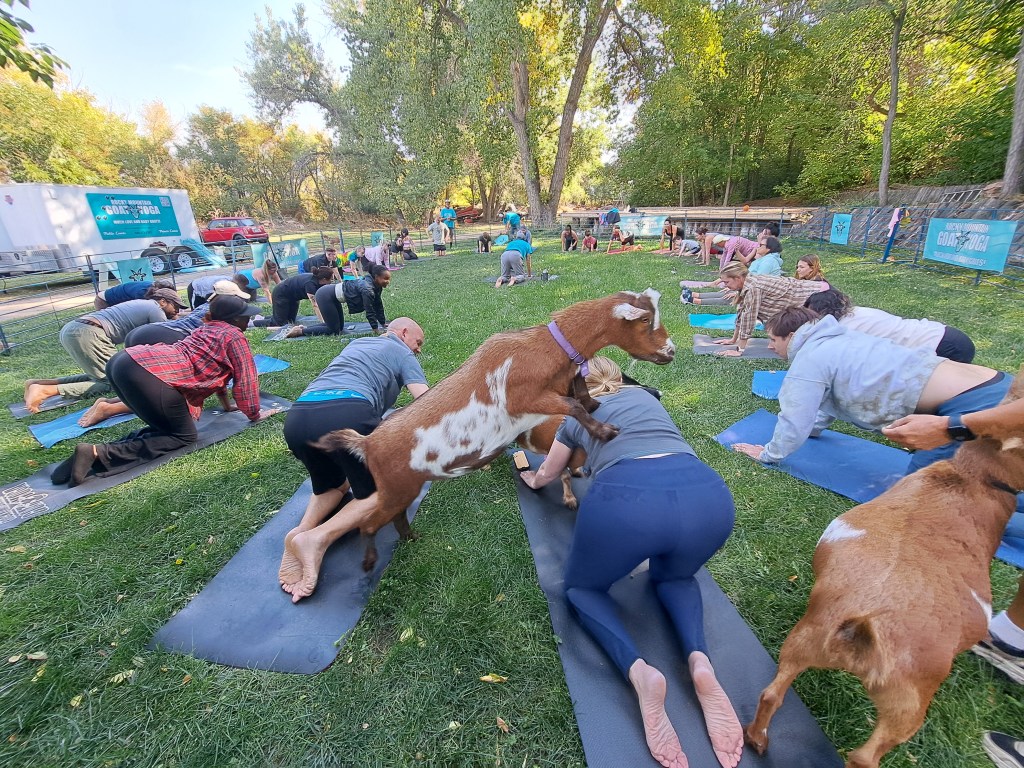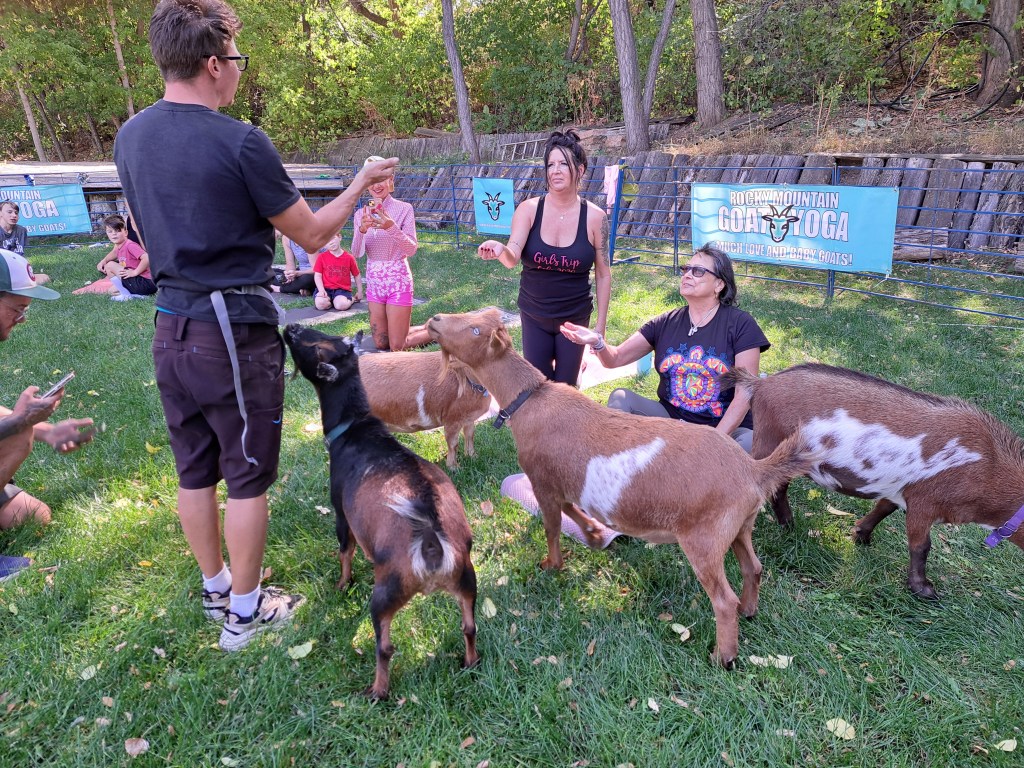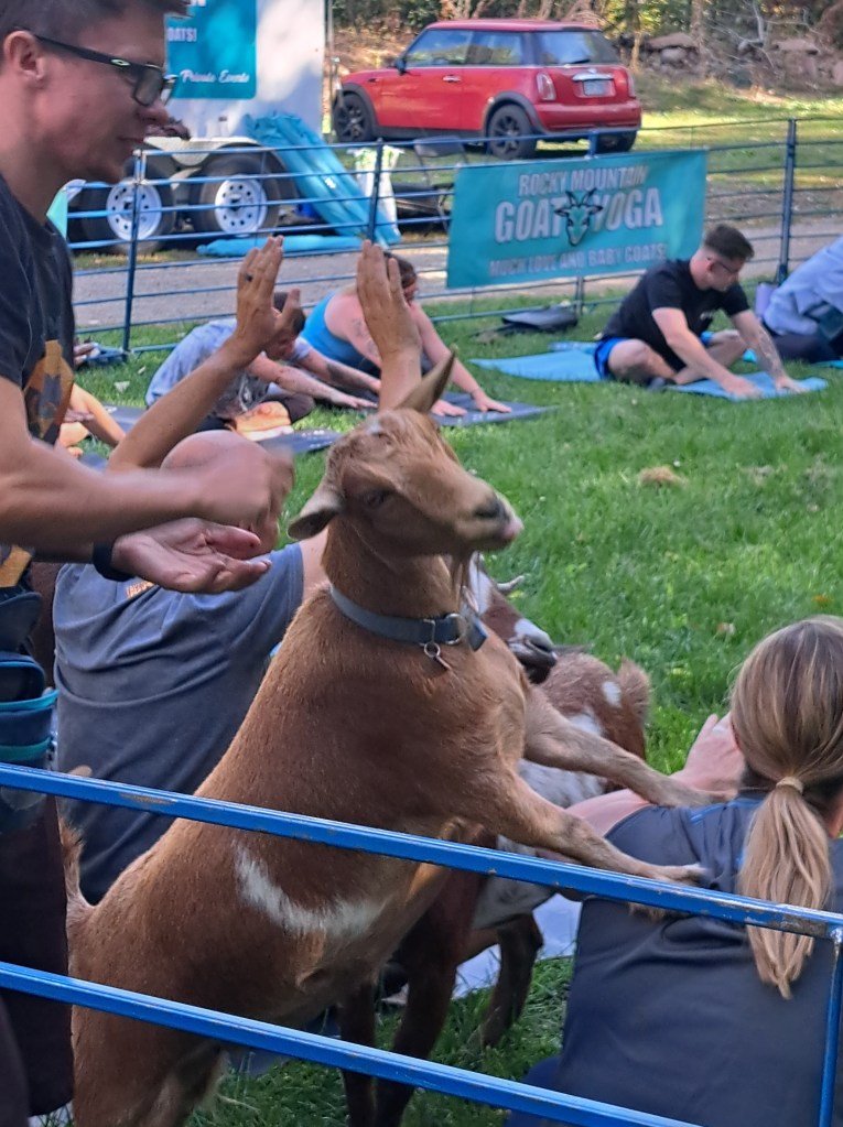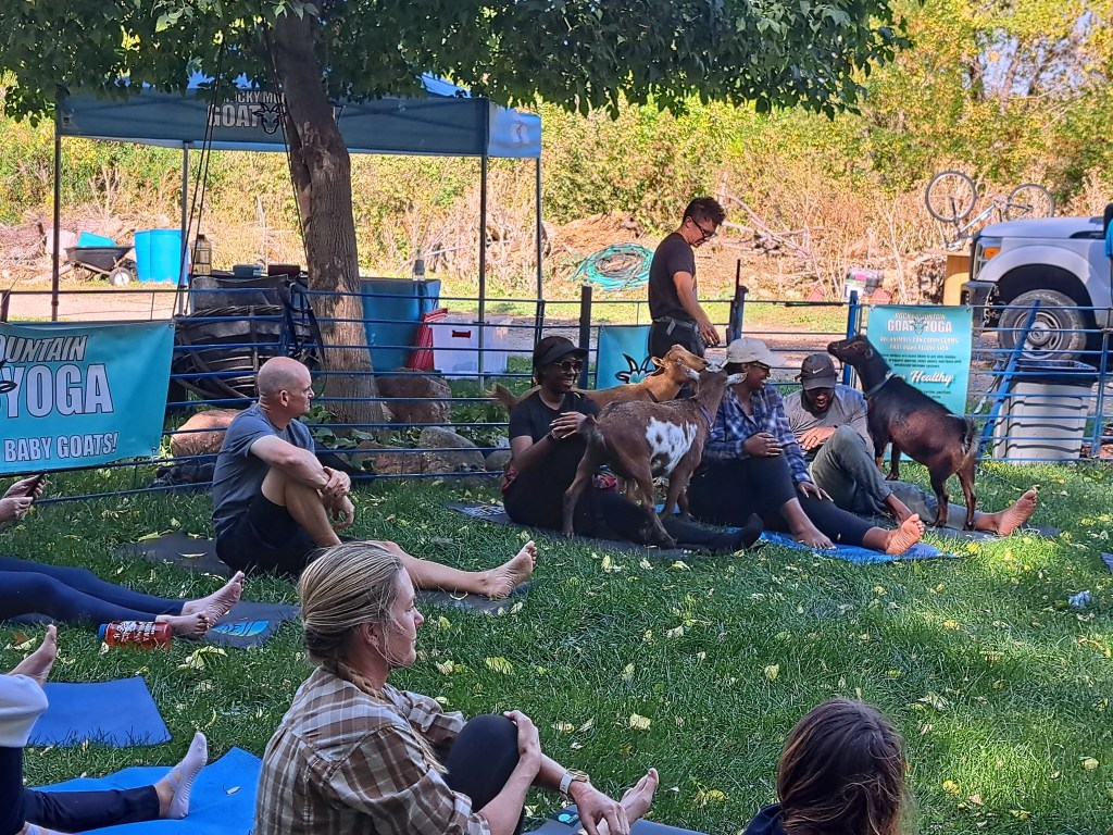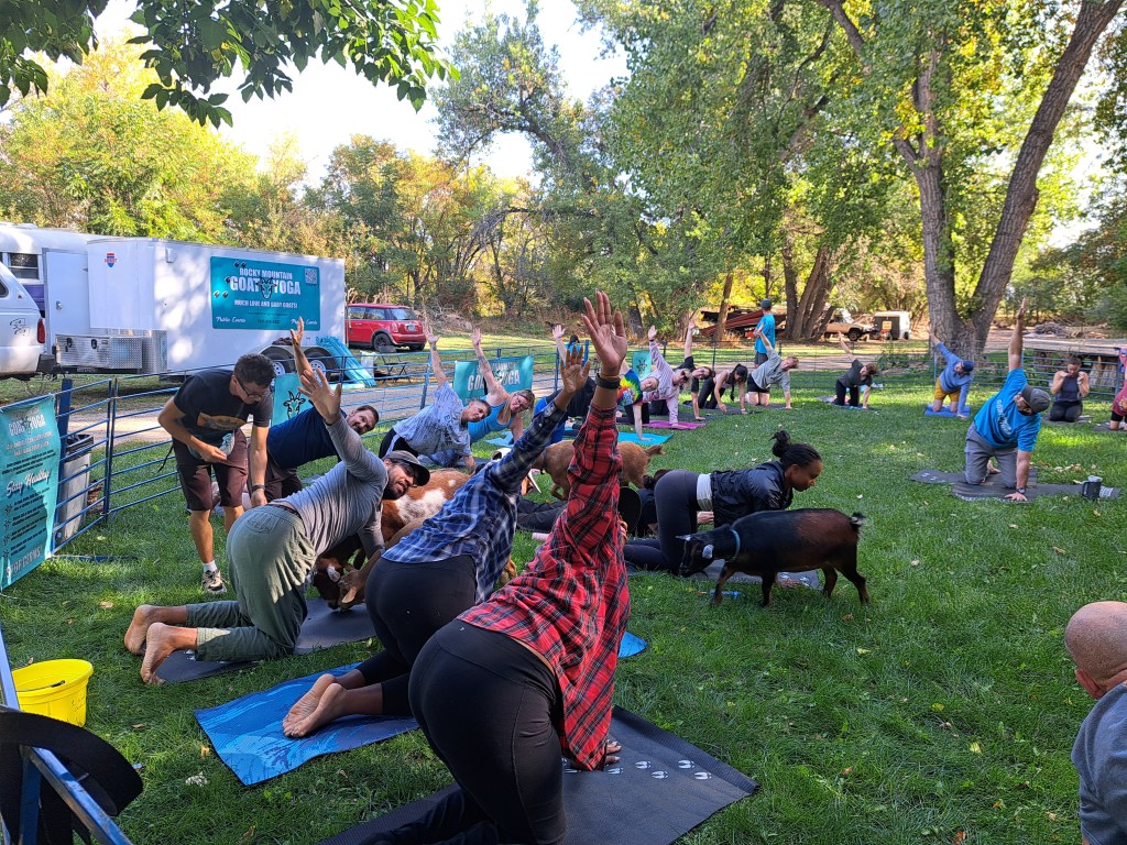 Would you like to have a goat yoga experience? Check my calendar for upcoming times and locations, or visit Rocky Mountain Goat Yoga for the full calendar and event schedule.